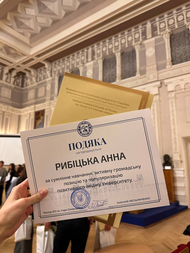 Від кафедри менеджменту підприємств було відзначено студентку 3 курсу – ✨Рибіцьку Анну Русланівку. ✨