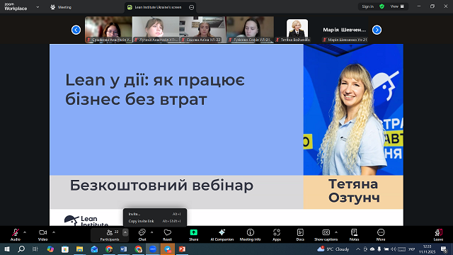 Особливу увагу спікерка приділила ролі Lean-менеджменту в сучасному управлінні, інструментам Lean, які дозволяють компаніям досягти вражаючих результатів. Адже для менеджерів сьогодні недостатньо просто планувати чи координувати роботу — вони мають уміти оптимізувати процеси, раціонально використовувати ресурси, усувати втрати та розвивати команди. Саме ці компетенції роблять управлінця лідером змін.